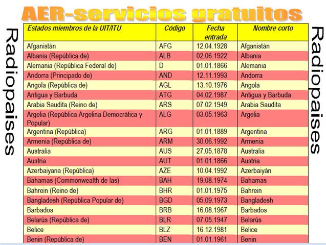 En el mundo de la radio las siglas para designar a países y territorios son de dos tipos. El primero es de la IARU, la Internacional Amateur Radio Unión, en la cual cada país, isla y en general cada pedazo de tierra firme en el planeta, habitado o no, cuenta con su símbolo integrado por letras o bien letras y números. Bután y Bulgaria, por ejemplo, están designados por A5 y LZ, respectivamente. En el segundo caso se trata de las siglas asignadas por la Unión Internacional de Telecomunicaciones ITU a emisoras que transmiten habla y música. En esta caso se ha decidido que las siglas estén integradas por una o tres letras latinas. Se designan con una letra. Brasil, con B, Alemania, con D, España, con E, Francia con F, Gran Bretaña, con G, Italia, con I, Japón, con J y Suecia, con S. No está bien claro por qué los países enumerados están designados con una letra, y el resto de países del mundo, con tres.